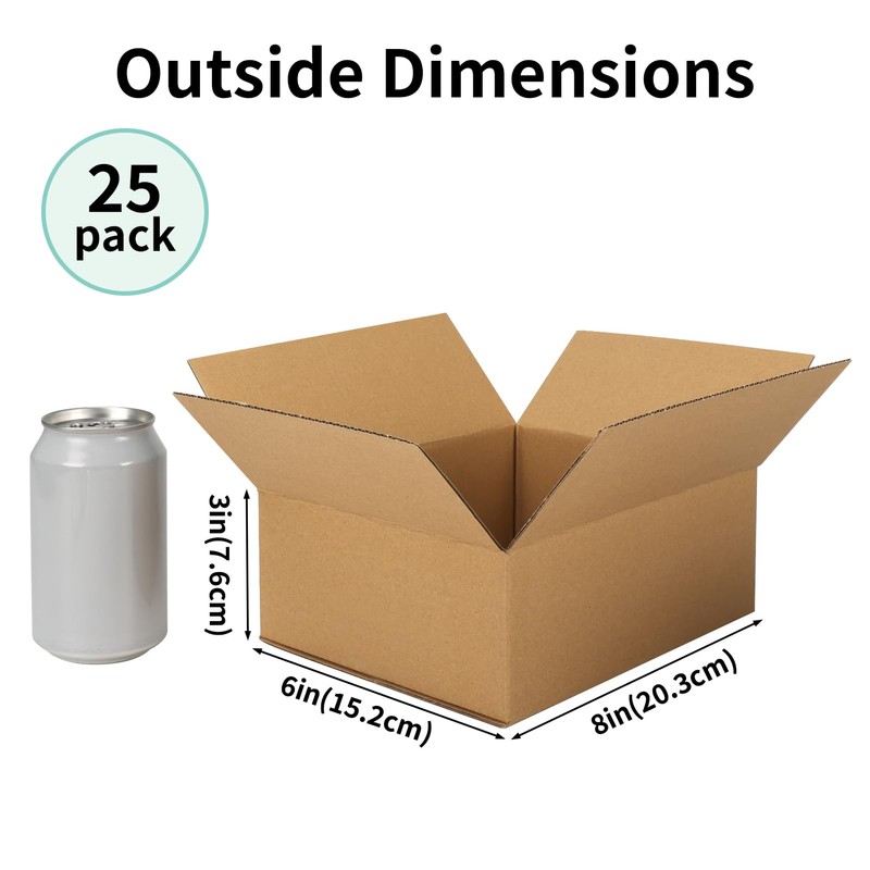 • 8x6x3 Shipping Boxes: The package comes with 25 packs of 8x6x3 shipping boxes, perfect for shipping small lightweight items.