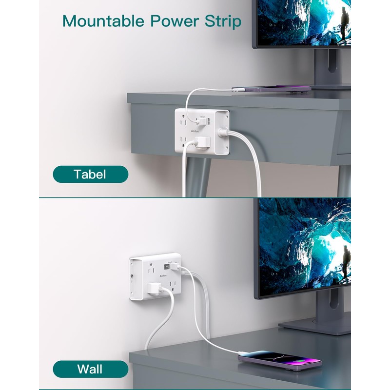 • 【Wall Mount Power Bar 】- No need to measure and guess where you had to attach screws, Addtam unique screw fixation design on both ends allow this white mountable power bar securely installed on the wall or under the desk (4 screws included)