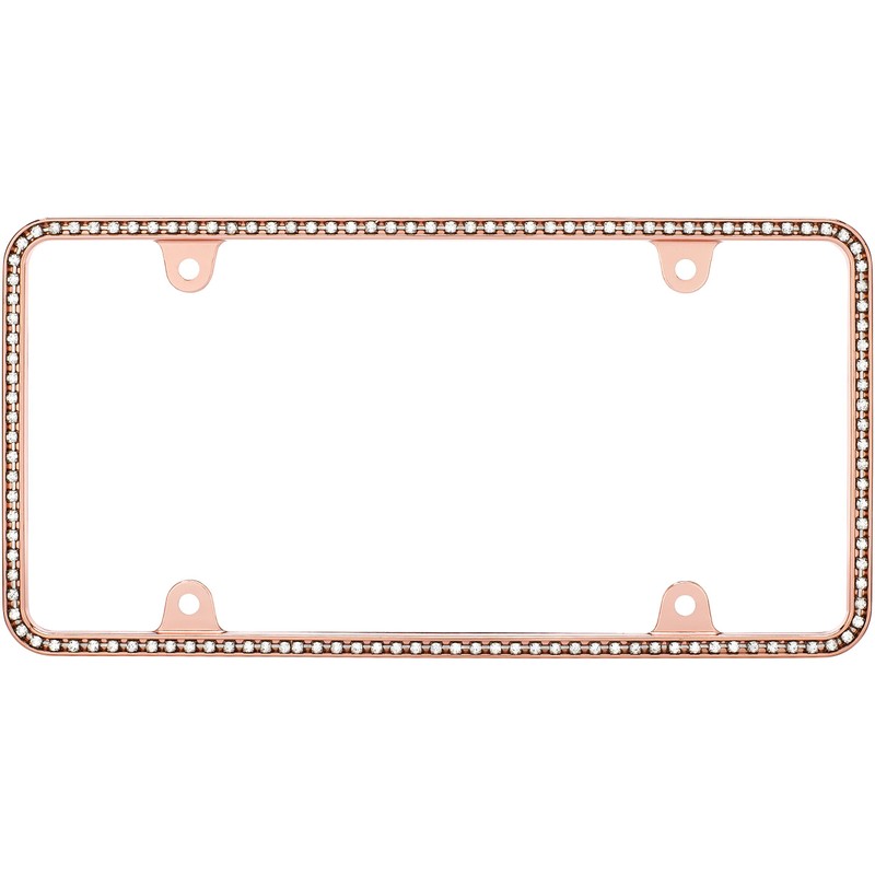 An elegant rose gold frame features one continuous row of clear, faceted crystals. Cruiser Accessories is a family owned business that has been manufacturing and selling license plate frames for over 30 years. Through innovation, attention to detail and many patented designs, Cruiser has evolved into the largest supplier of license plate frames, novelty plate shields and mounting hardware in the automotive aftermarket. Cruiser's product line also includes both standard and exclusive Star Pin locking hardware, designer fastener caps, mounting accessories, motorcycle frames and 3d-Cals decals. Let Cruiser Accessories complete your ride’s look today!
