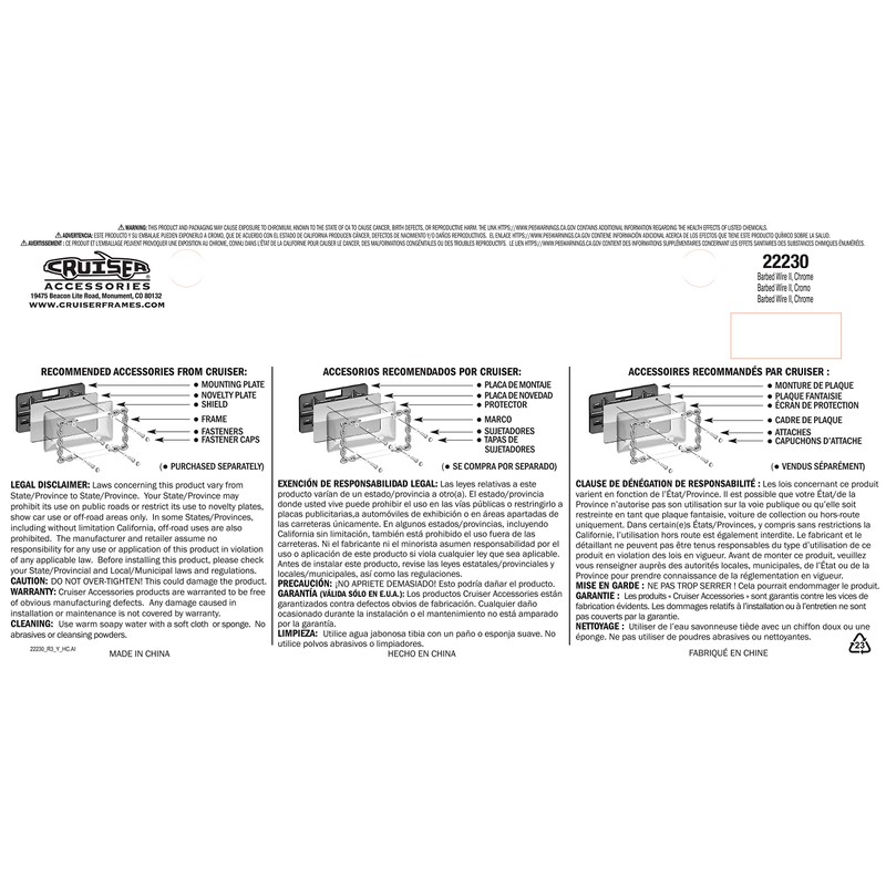 Cruiser Accessories 22230 Barbed Wire II License Plate Frame, Chrome