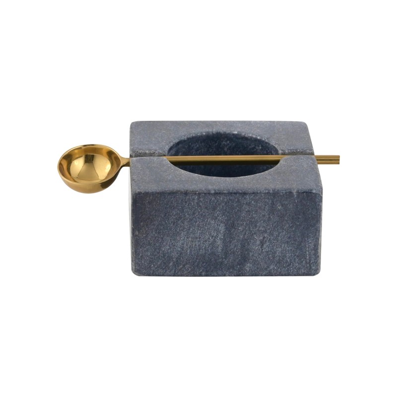 - HAND-CRAFTED ALL-NATURAL MARBLE -Each piece is hand-crafted from 100% natural marble. The set includes a 3-inch square marble salt cellar and a gold tone spoon.
