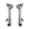 Pair (L&R) of telescoping spurs for bass drum. Length ranges 10 1/2" to 13 1/4" from angle adjustment wingnut to end. 4-bolt pattern; 2 1/2" spacing top-to-bottom, 1 3/4" spacing left-to-right. Gasket and bolts included. Finish may show some scuffs/fingerprints.