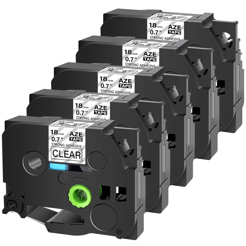 Cruxer Compatible for Brother TZE S141 18mm 3/4" Extra-Strength Adhesive Label Tape Black on Clear for PTD400 PTD450 PTH110 PTD400AD PT Cube 710BT PT-1880C PT2030 PTE550 PTP750 Label Makers, 5-Pack