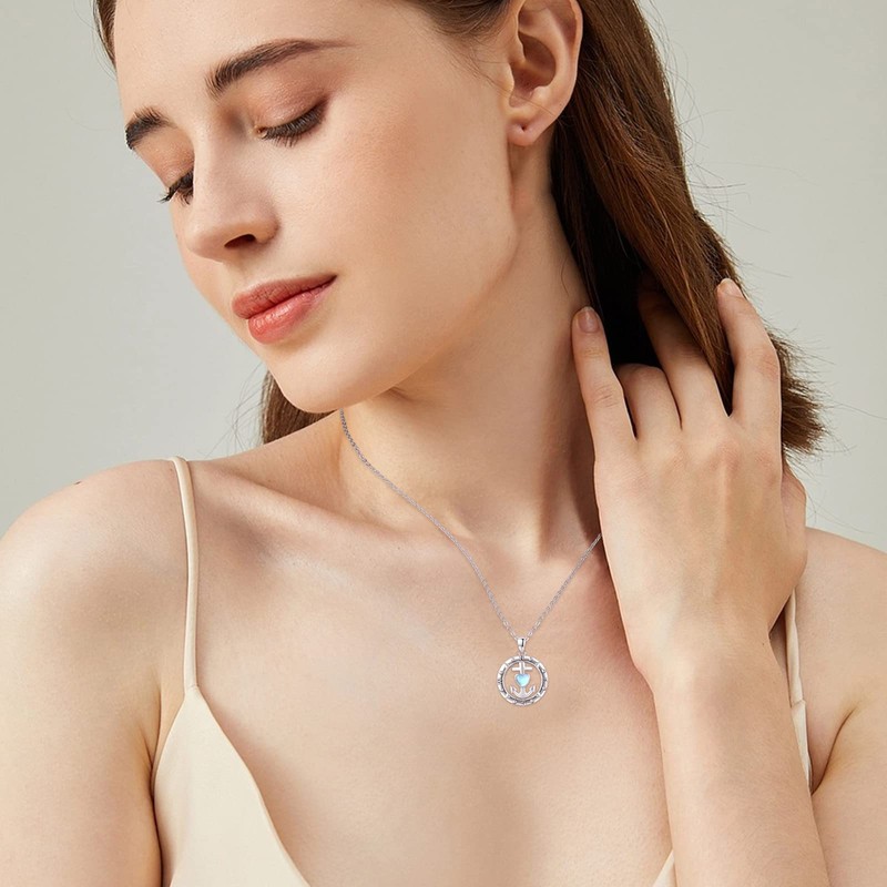 CRWENG Compass Pendant 925 Sterling Silver Anchor Necklace Heart Shaped Moonstone Nautical Jewellery Necklace for Women Anniversary Christmas Valentine's Day Birthday, Unit size, Sterling Silver