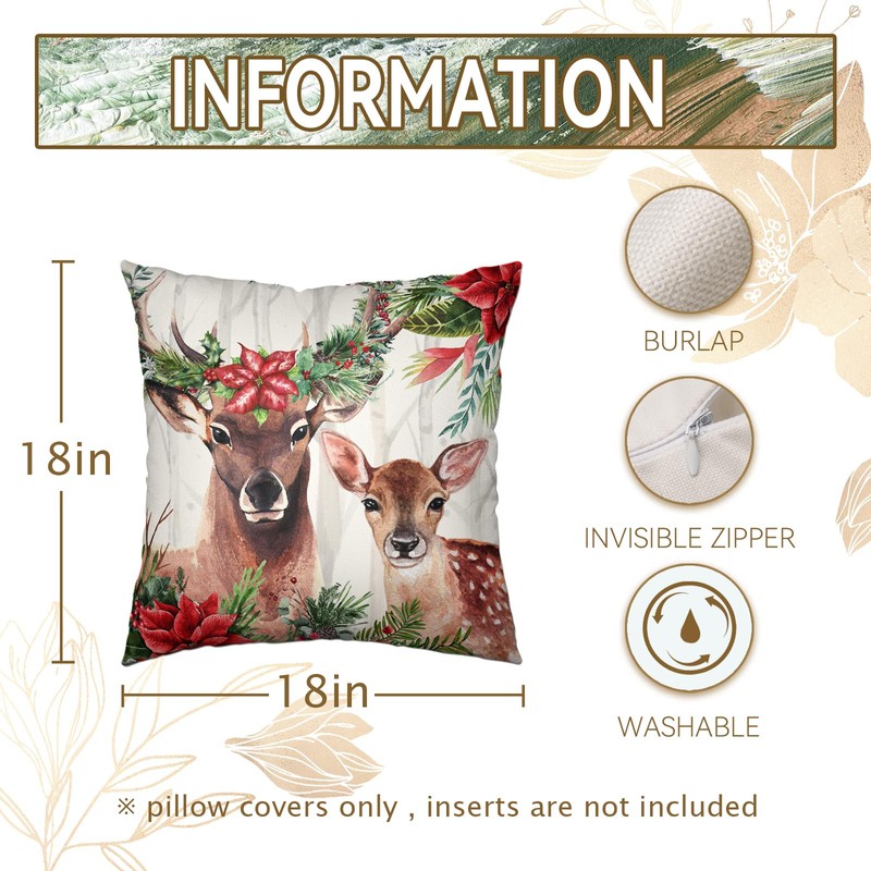 Material: The standard size of the Christmas deer pillow cover is made of excellent cotton linen.