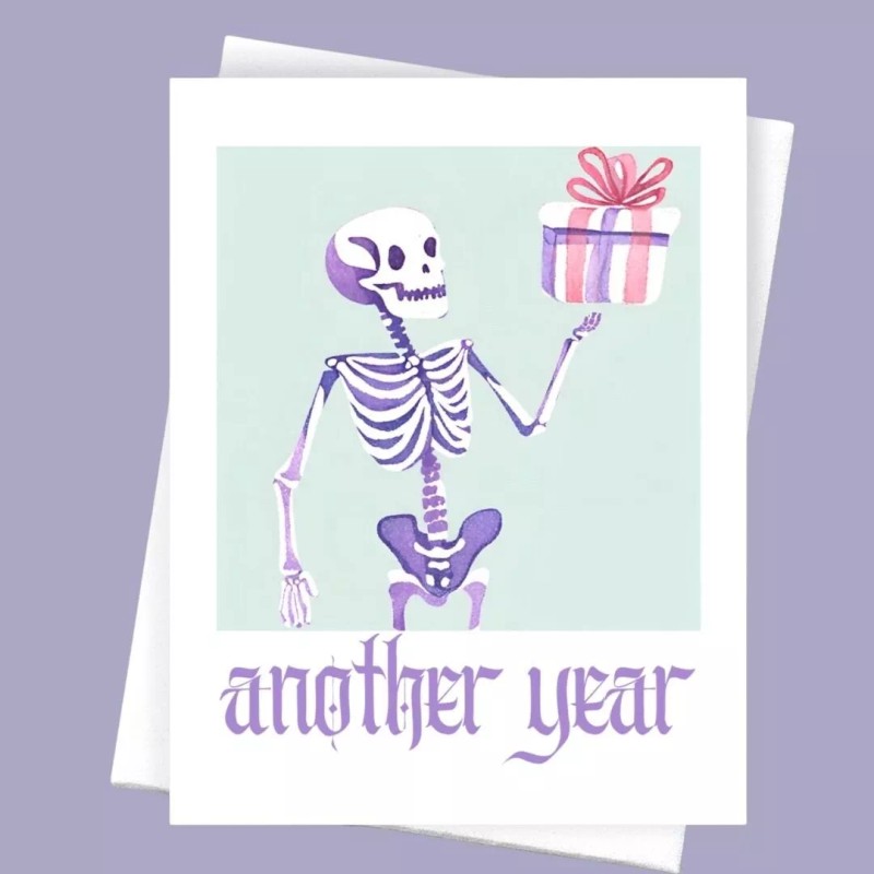 Cryptic Paper Co Another year pastel gothic skeleton funny birthday card for getting older