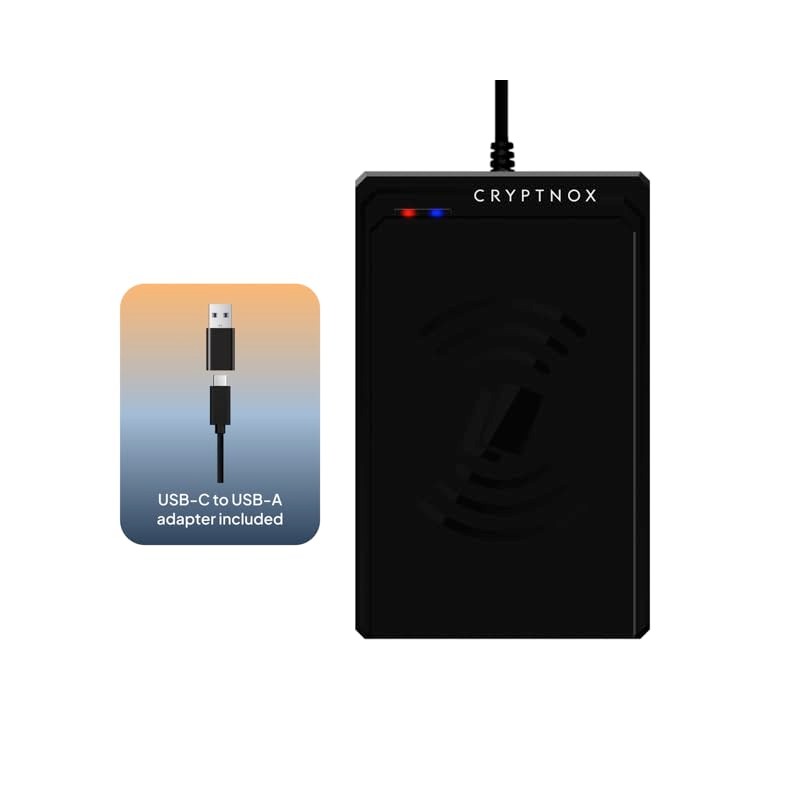 Cryptnox Contactless Smart Card Reader – ISO 14443 & Mifare® Compliant | USB Type-C and Type-A Connectivity | Secure Authentication for E-Payments, E-Commerce, Access Control & More