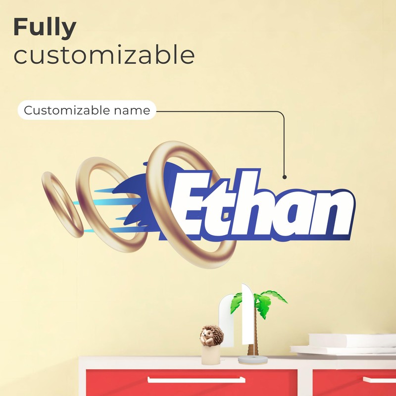 - 🔨 Fully Customizable Speed Room Decor: Transform your child’s space with a personalized name decal featuring high-speed-inspired elements. Designed with a dynamic and action-packed theme, this vinyl sticker brings an exciting touch to nurseries, playrooms, and bedrooms. Customize it with your child’s name and iconic golden rings for a thrilling and energetic look that stands out.