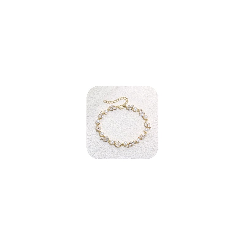 Crysdue Cubic Zirconia Simulated Pearl Marquise Drop Adjustable Link Wedding Bridal Bridesmaid Prom Tennis Bracelet Jewelry Gift for Women Clear Gold-Tone