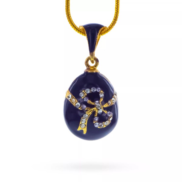 BestPysanky Crystal Bow Egg Pendant Necklace