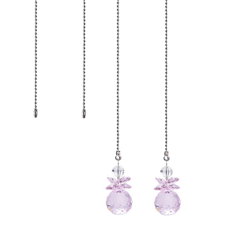 Crystal Ceiling Fan Pull Chains Hanging Pendants Prism Pack Of 2 Pink