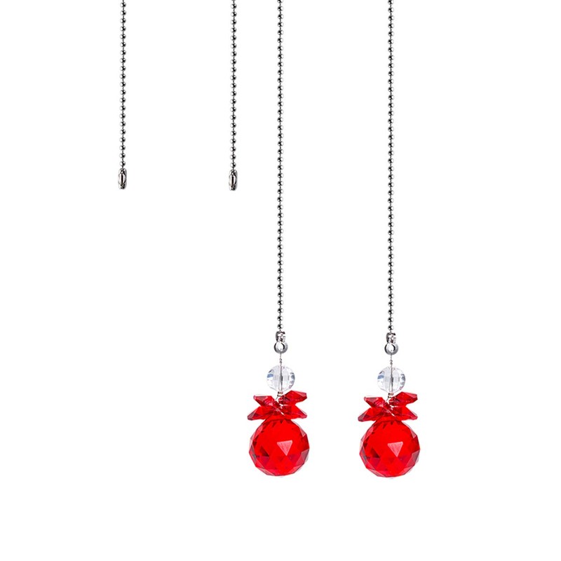 Crystal Ceiling Fan Pull Chains Hanging Pendants Prism Pack Of 2 Red