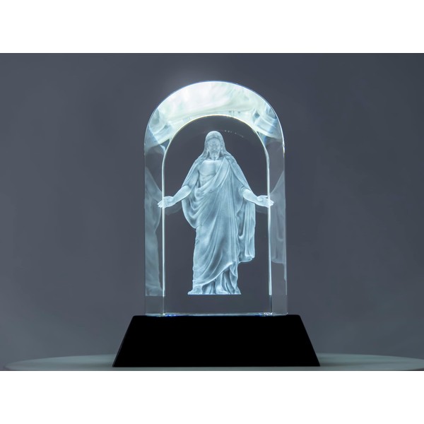 Crystal Christus 3D Laser Engraved Statue & LED Lighted Base