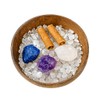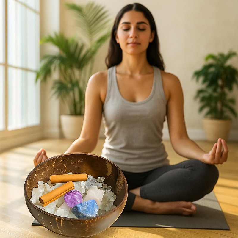 - Complete Cleansing Ritual Kit – 100% Natural Includes a hand-polished coconut bowl, three powerful healing crystals—white quartz, amethyst, and lapis lazuli—plus clear crystal chips and natural cinnamon sticks. Ideal for daily meditation, altar setup, or energy rituals.