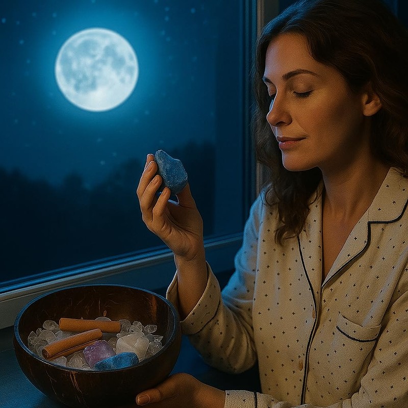 - Crystal Chips & Cinnamon – Energy Flow & Aroma Clear crystal chips support a flowing energy field; the warm scent of cinnamon sticks boosts grounding and spiritual abundance.