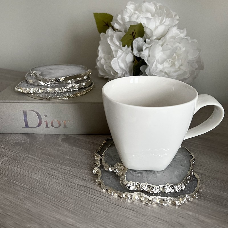 Crystal Coasters -White and Silver Salt Agate - Set of 2 Natural