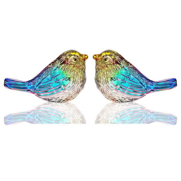Crystal Colorful Bird Figurine 2 Pcs - Glass Bird Animal Collection Figurine Anniversary Wedding Gift Couple Birthday Retirement Gift for Women Mom Mother's Day Gift