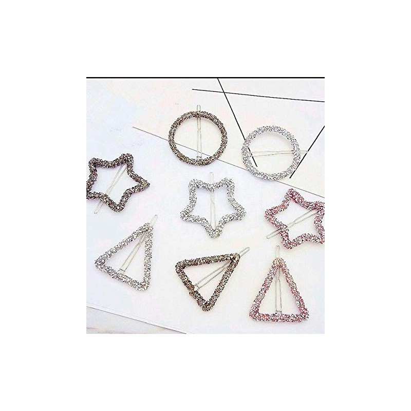- *MULTI SHAPE AND COLOR* each unit comes with 3 different colors PINK,BRONZ AND SILVER featuring a TRIANGLE, CIRCLE, AND TRIANGLE shape hair clip.