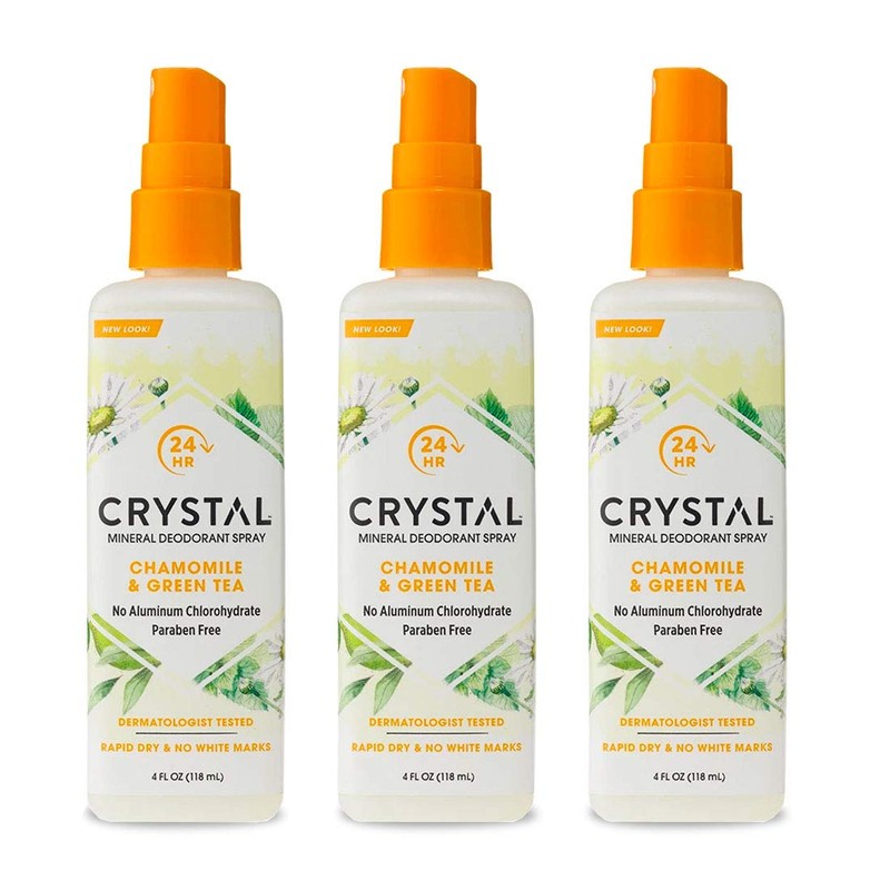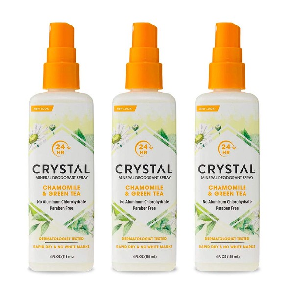 Crystal Essence Mineral Deodorant Spray, Chamomile & Green Tea 4 oz (Pack of 3)