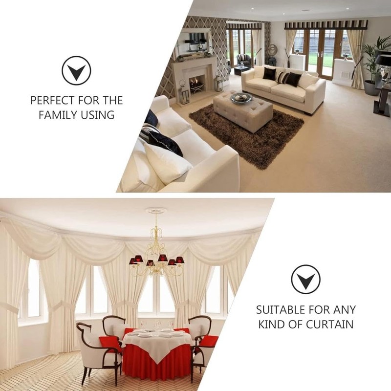 - [Wide Application] These curtain clips are suitable for all types of curtains, including thick blackout curtains, shower curtains, or thin sheer curtains. They can be used in various rooms such as the living room, bedroom, study room, bathroom, and patio. The spring rope length is approximately 21 cm.