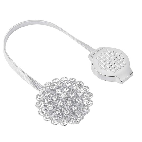 Crystal Flower Curtain Tiebacks, Decorative Curtain Holdback Buckle Clips with Stretchable String Rope for Bedroom, Living Room, Office (Silver)