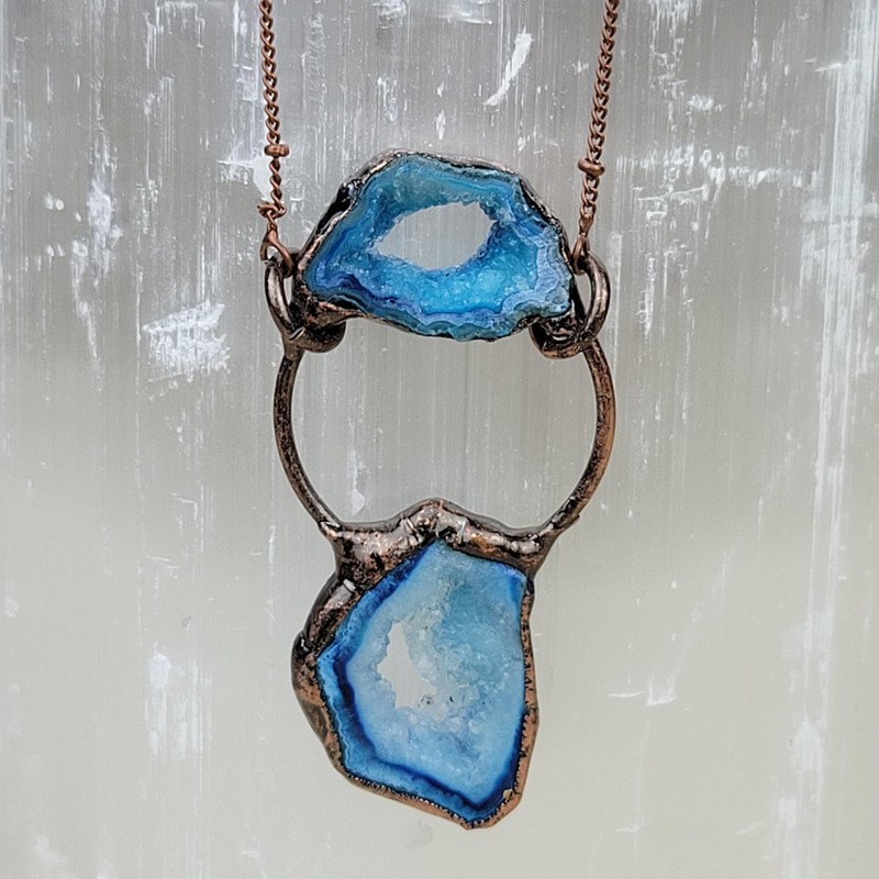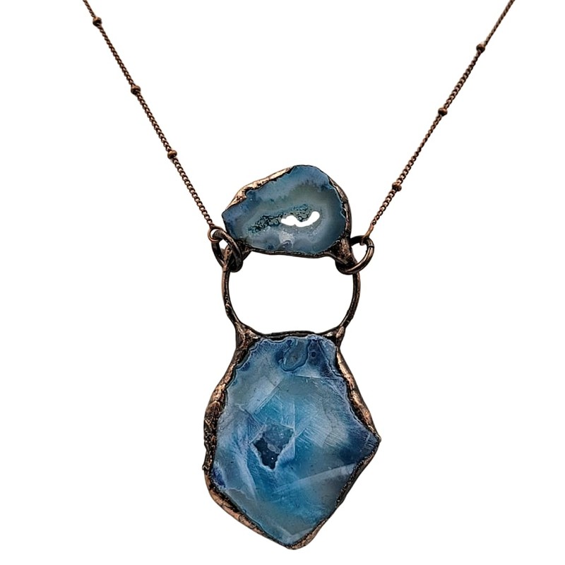 Crystal Joys Bohemian Agate Geode Slice Two Stone Necklace