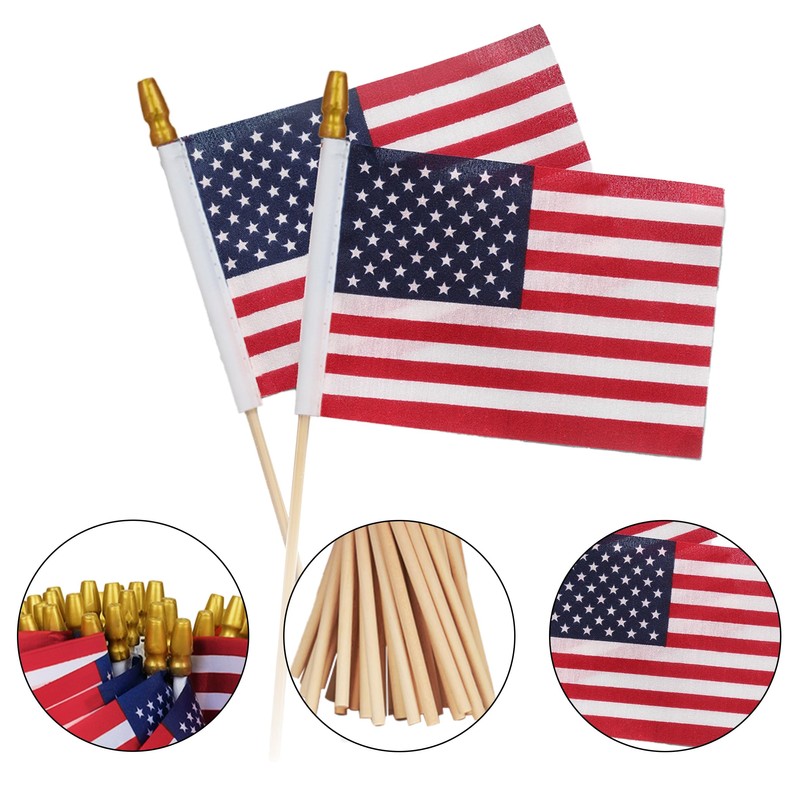 - Pre-Assembled and Ready to Use – Each 4x6 inch American flag comes pre-mounted on an 11-inch natural wood stick with a smooth plastic gold spear tip, making them ideal for quick setup at any event.