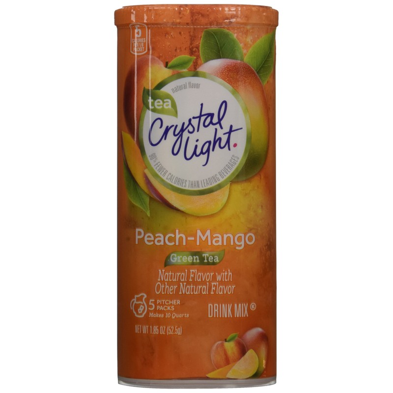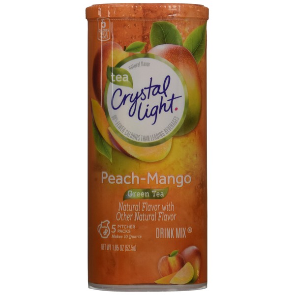 Crystal Light Natural Green Tea Peach Mango Drink Mix (30 Pitcher Packets, 6 Canisters of 5)
