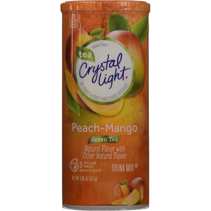 Crystal Light Peach Mango Green Tea Drink Mix, 4 BOXES, Total 20 Pitcher Packs,