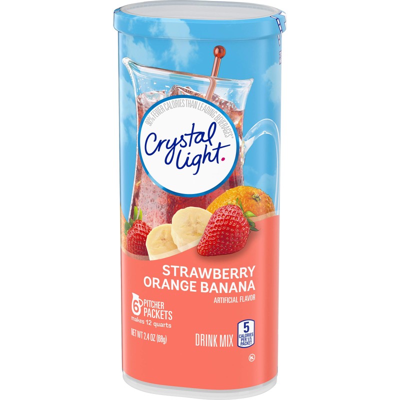 - Crystal Light Artificially Flavored Strawberry Orange Banana Powdered Drink Mix pitcher packets deliver low calorie refreshment