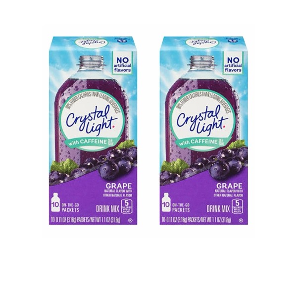 Crystal Light with Caffeine Grape Flavor - On The Go packets 10 Count- 2 Boxes