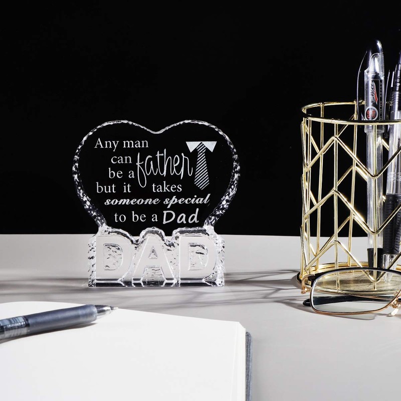 - 💝EXQUISITE WORKMANSHIP - Text "Any man can be a father, but it takes someone special to be a Dad" engraved inside the crystal by laser, clear and never fade; Body made of top quality K9 crystal, no impurity, no scratch