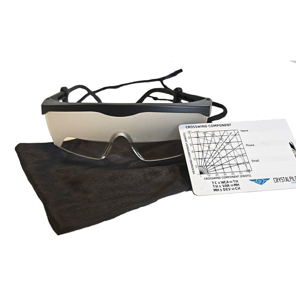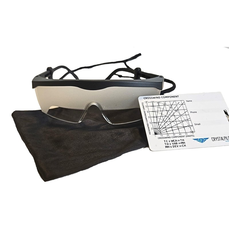 Crystal Pilot IFR Certified Fog goggles with adjustable strap and Bag Tag with Light Gun Signal/Crosswind Component Tables