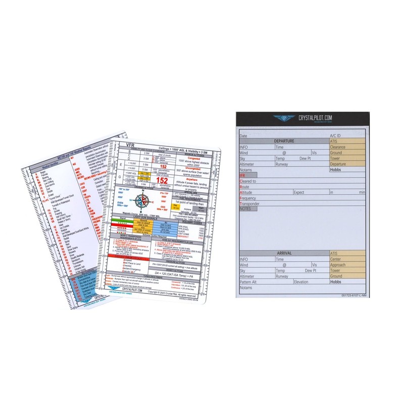 Enhance your flight planning and in-air reference with the Crystal Pilot Medium VFR/ METAR Cheat Sheet & Flight Planning Notepad Bundle. Crafted for aviators by aviators, this bundle combines convenience and utility to streamline your flight planning.