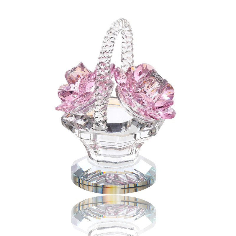 - 💞PREMIUM CRYSTAL & CRAFTS - Our crystal rose basket is made of high-quality K9 crystals, without bubbles, distortions, or impurities. Each flower's petal is carefully selected and polished by craftsmen to better refract lights. Increasing the sense of splendor, and lifelike. Flower Size: 7.2*10cm/2.83*3.93"; Nw: 195g/0.42 lb