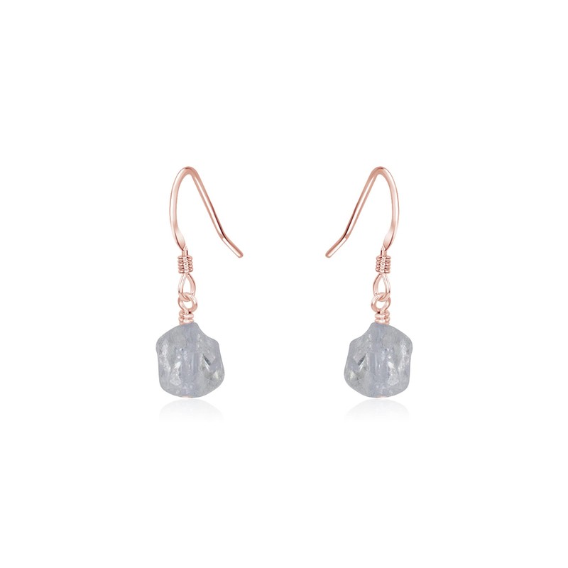 Crystal Quartz Raw Nugget Earrings in 14k Rose Gold Fill