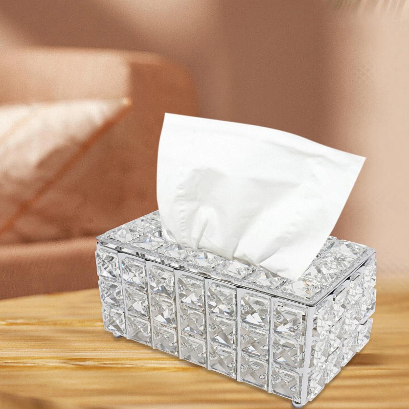 Crystal Rectangle Tissue Box Napkin Holder Rhinestone Tissue Storage Case W/ Lid