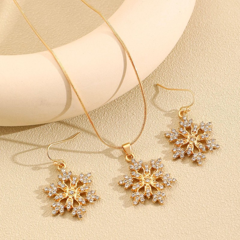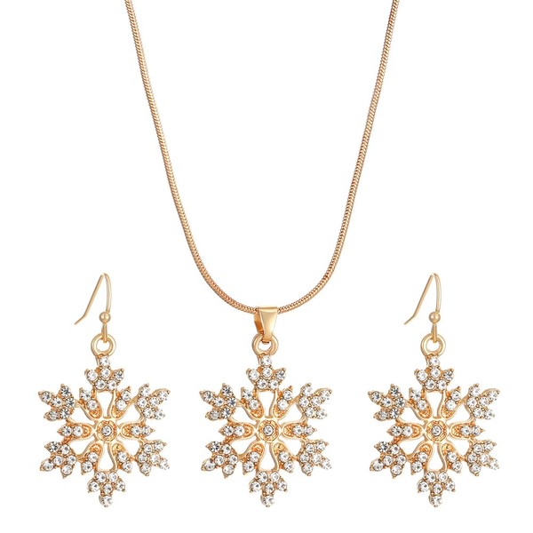 Crystal Snowflake Necklace with Earrings Set Women Sparkly Snowflower Pendant CZ Snow Flower Jewelry Set for Women Party Prom Accessories, one size, Zinc, No Gemstone