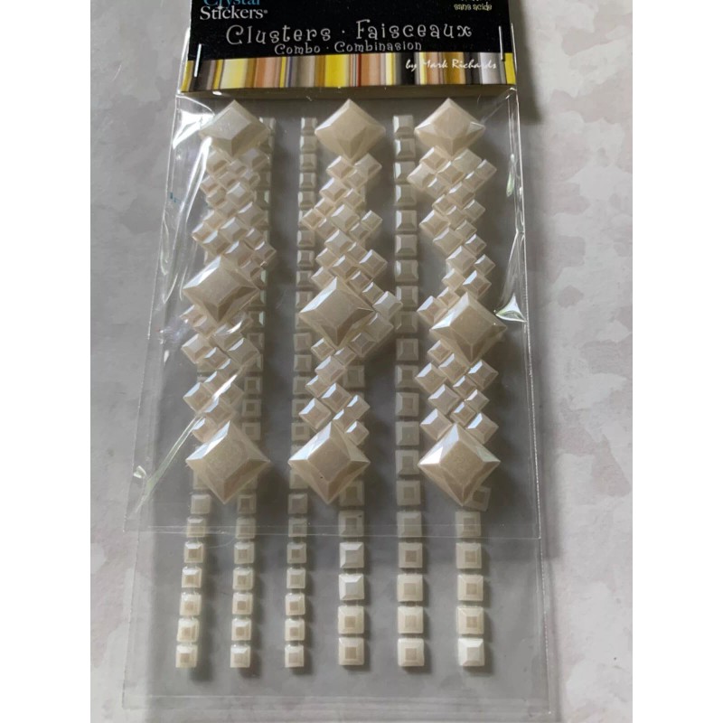 CRYSTAL STICKER 2 SHEETS CLUSTERS WHITE PEARL SQUARE CLUSTERS MULTI-SIZE 9PCS