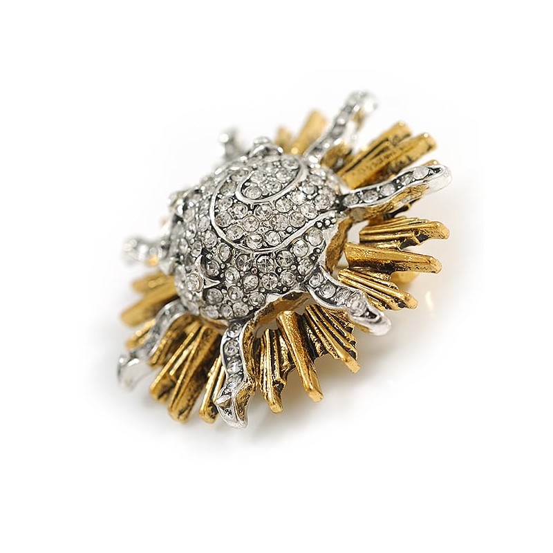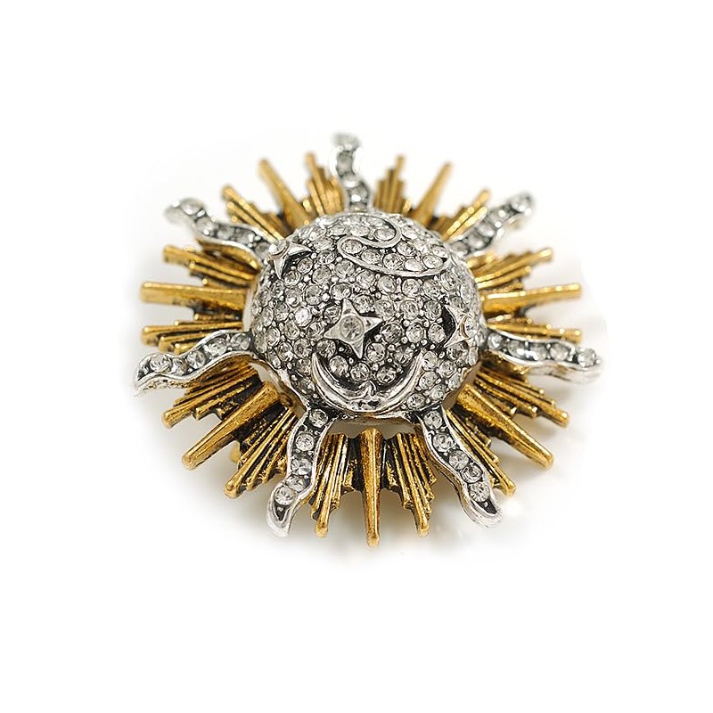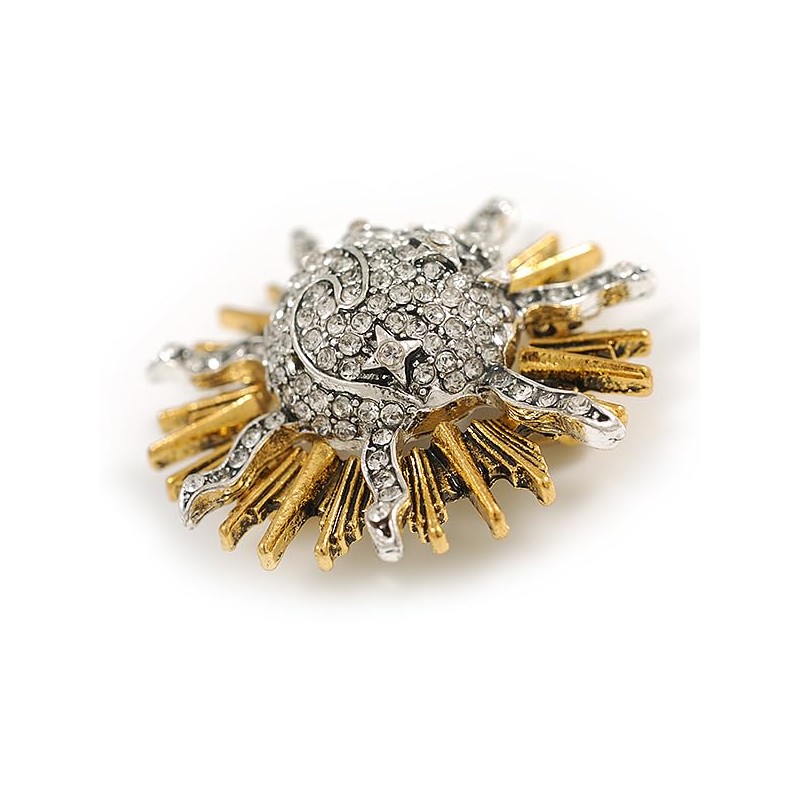 Crystal Sun/Moon/Star Brooch in Gold/Silver Tone - 40mm D