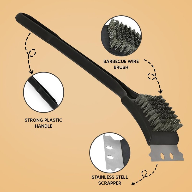 - 🧼 Efficient Grime & Grease Remover: Tough wire bristles tackle baked-on residue with ease, leaving your grill spotless.