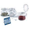 - PREMIUM QUALITY MATERIAL: The condiment Canisters' spice jar Set of 3 is made of lead-free glass and the lid is made of BPA-free and high-quality European plastic material.