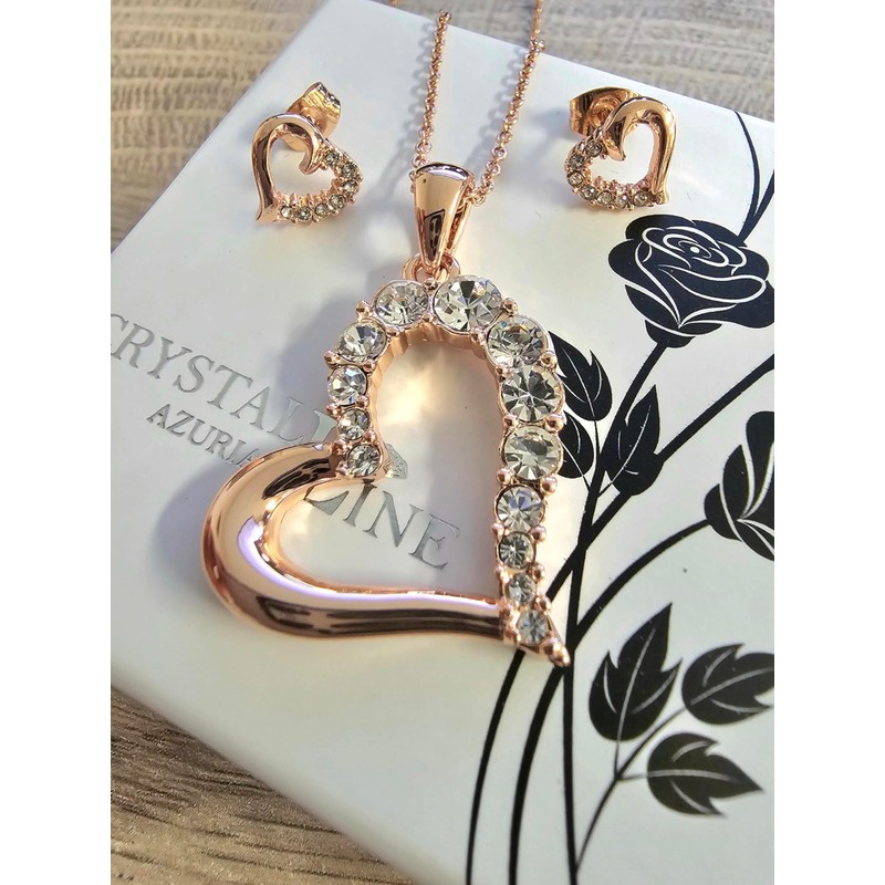 - LOOK LIKE A PRINCESS WITH YOUR HEARTS EARRINGS: Indulge yourself in the Crystalline Azuria premium jewelry set for women and impress everyone with your 18K rose gold plated earrings!