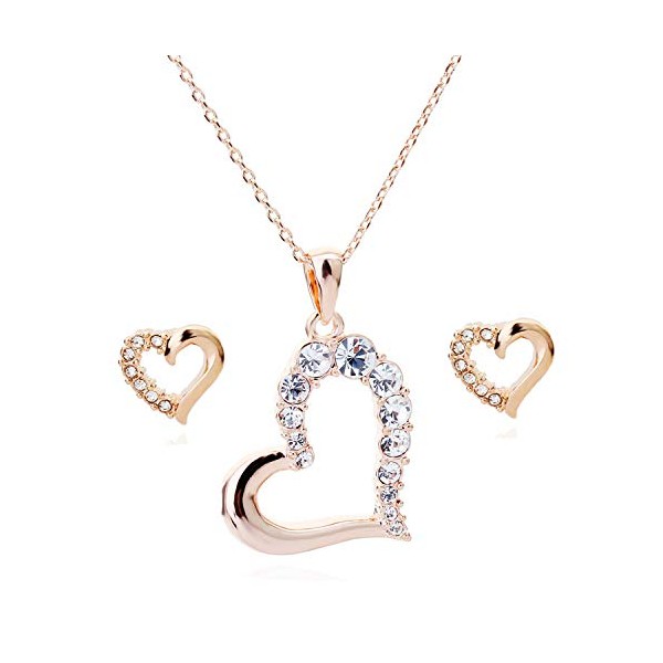 Crystalline Azuria White Crystal Necklace and Earrings Hearts Set Costume Jewelry Wedding Bridesmaid Accessories Rose Gold Plated