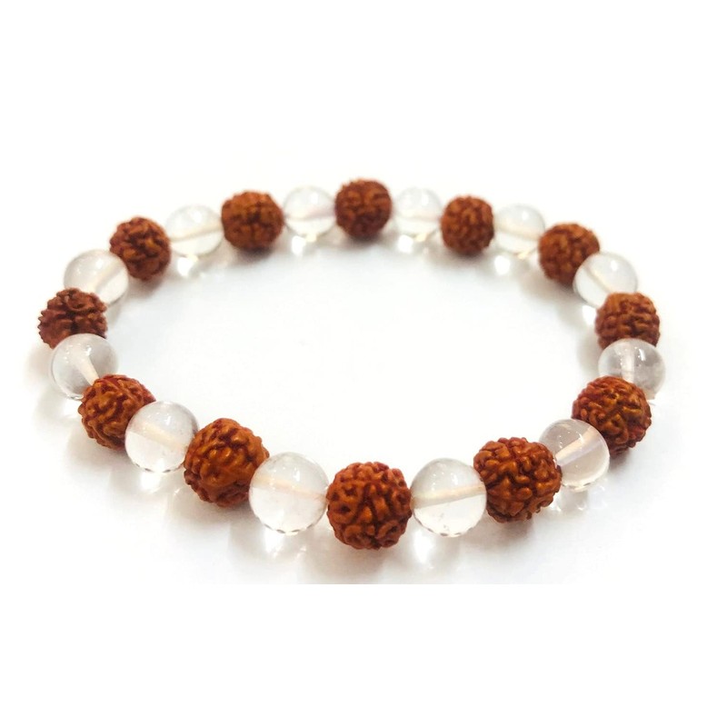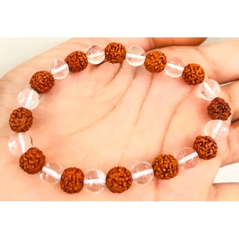 crystalmiracle Clear Quartz Rudrakhsa Beaded Round String Crystal Healing Gift Wellness Handcrafted Accessory