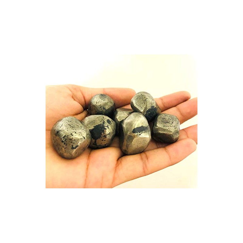 - The size of the Golden pyrite tumbled stone is 0.5 to 1 inch approx each and are handcrafted. It is a single tumbled stone. It helps in crystal healing,wellness,psychic energy,power,protective,meditation,dowsing,peace of mind,health,wealth,success,metaphysical,anxiety,depression,hopelessness,sharpens the mind,balance the metabolism etc.