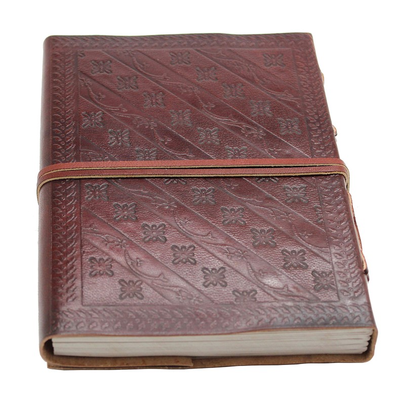 Crystalo - Handmade Leather Bound Notebook Journal with Embossed Om 7" x 5" (OM)