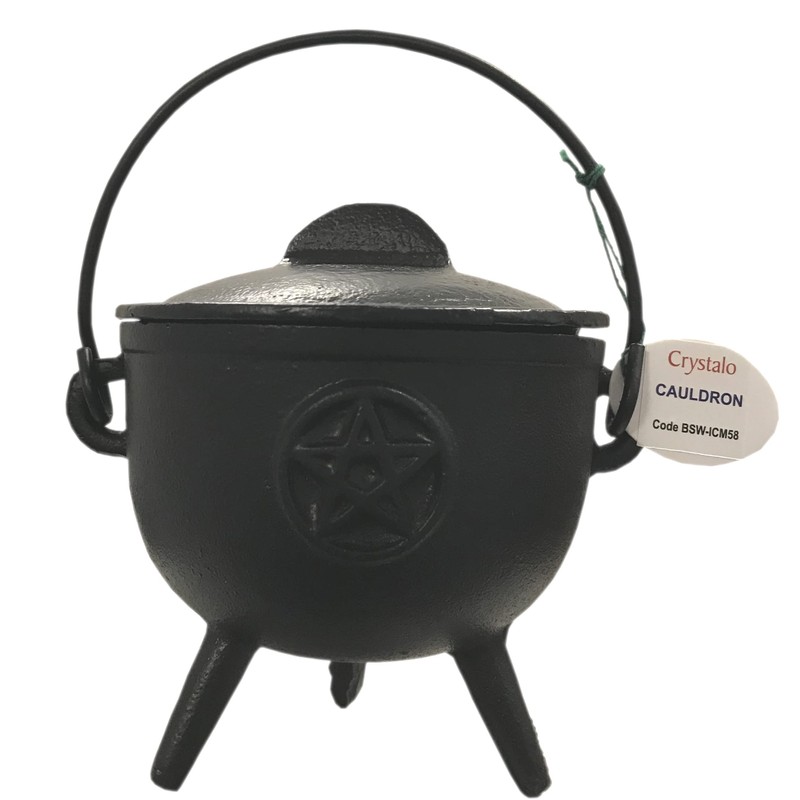 - Crystalo - Pentagram Cast Iron Cauldron with Lid Size-4" Diameter