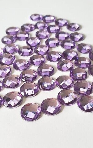 Crystals and Gems CraftbuddyUS 100 x10mm Flatback Faceted Acrylic LILAC Round Rhinestone Gems