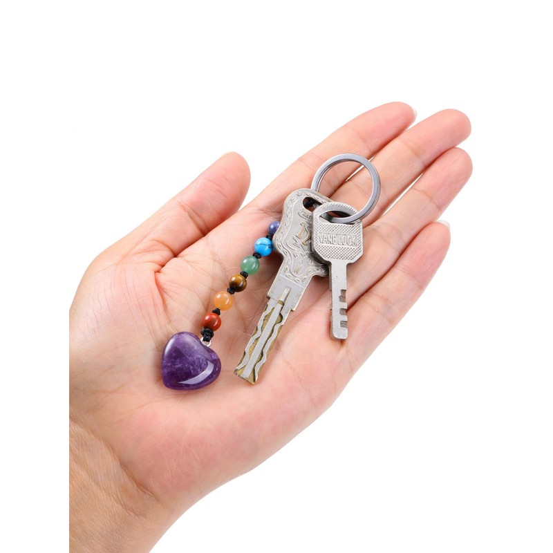 CrystalTears7 Chakra Keyring with Natural Stone Heart Pendant